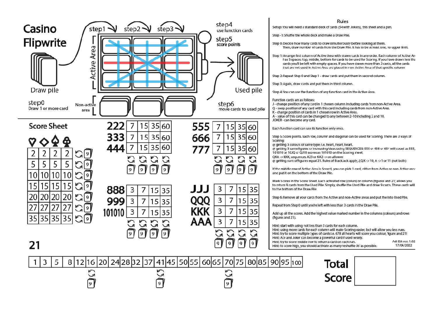 Casino Flipwrite is a solo, card driven puzzle, played with a standard deck of cards.